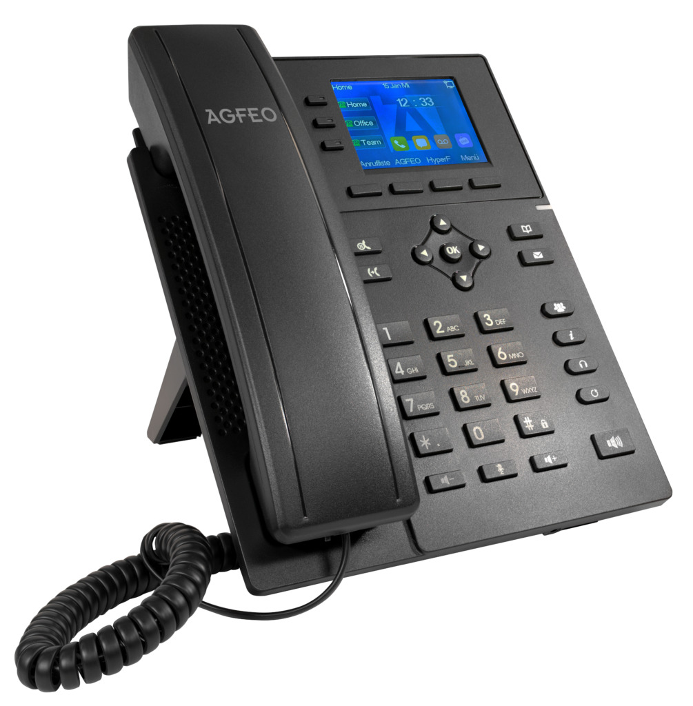 Es ermöglicht einen direkten Zugriff auf Anlagenkontakte und bietet eine perfekte Anpassung an AGFEO HyperFonie Instanzen, HyperVoice- sowie ES-Systeme. Ein weiteres zentrales Merkmal ist die komfortable CTI-Funktionalität, die eine effiziente Steuerung des Telefons über den PC ermöglicht und so Arbeitsabläufe erheblich erleichtert. Zudem unterstützt das T 17 SIP IPv6, wodurch eine zukunftssichere Netzwerkintegration und maximale Flexibilität gewährleistet sind. Für eine noch effizientere Nutzung lassen sich bis zu vier SIP-Linien konfigurieren, ergänzt durch drei Linientasten, die eine einfache Verwaltung paralleler Gespräche ermöglichen. Darüber hinaus verfügt das Gerät über ein großes internes Telefonbuch mit einer Kapazität von bis zu 1000 Kontakten.