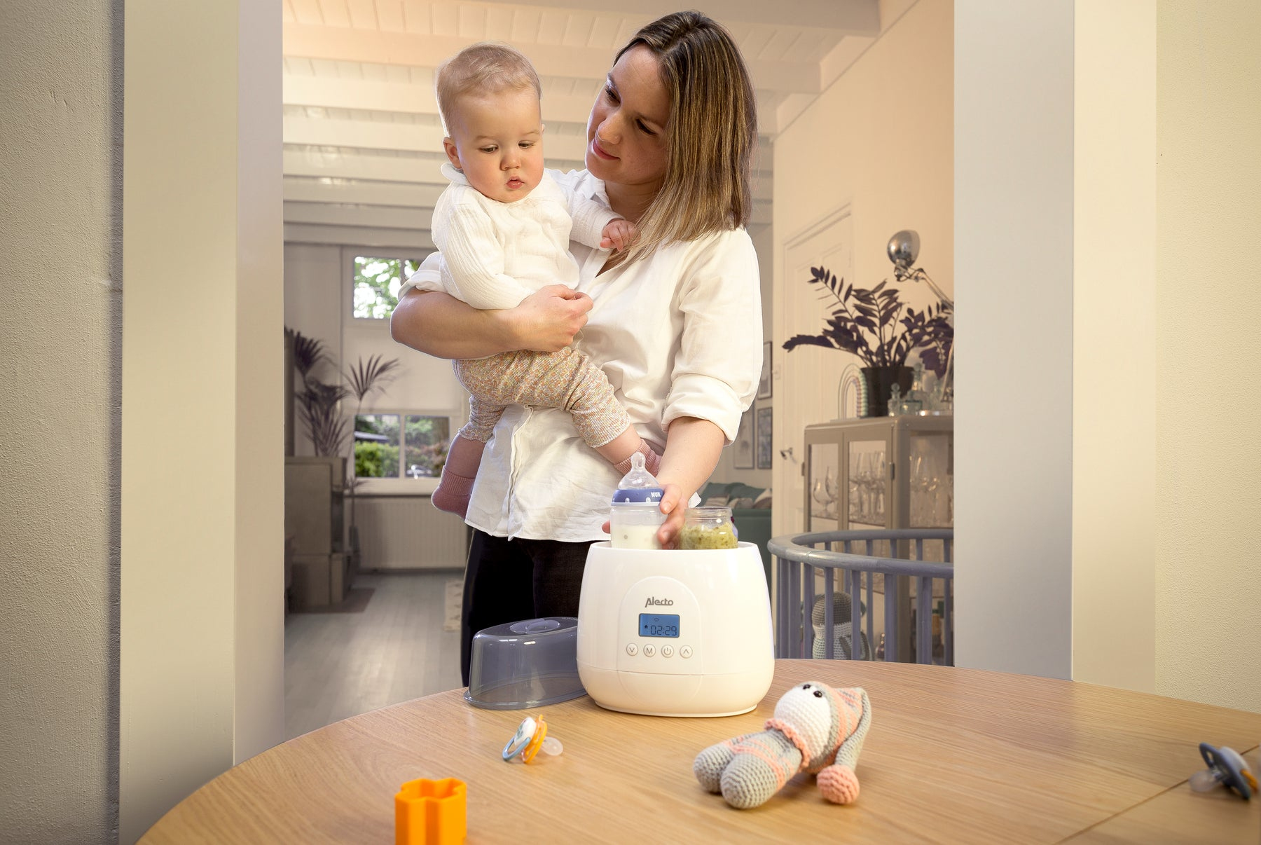 Der schnelle digitale Doppelflaschenwärmer Alecto BW700TWIN ist eine echte Bereicherung für Ihr Zuhause. Mit einer Leistung von 512 Watt kann das Gerät sehr schnell zwei Flaschen gleichzeitig erhitzen, sterilisieren und auftauen! Geben Sie Ihrem Kind mit dem BW700TWIN einen guten Start in die Ernährung, denn dank der Temperaturregelung wird das Essen nie zu lange oder zu hoch erhitzt. Auf diese Weise bleiben so viele Vitamine und Nährstoffe wie möglich erhalten.