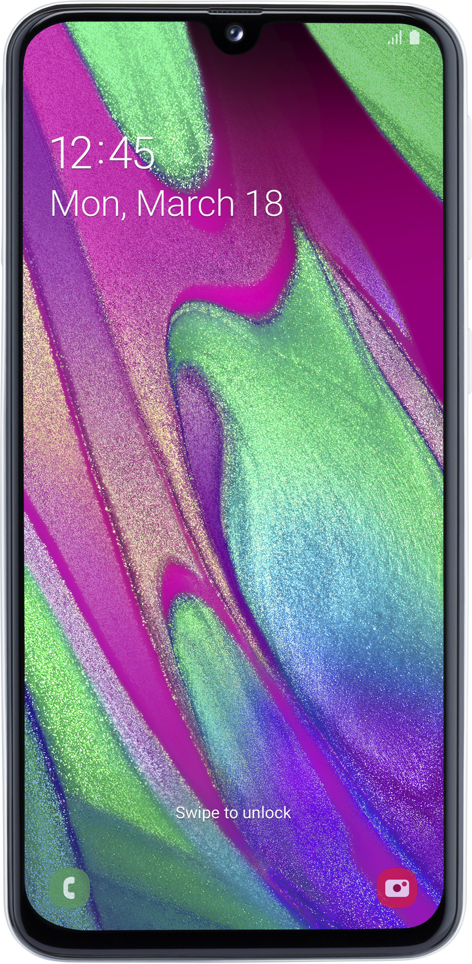 Das Galaxy A40 begeistert außerdem durch eine lichtstarke Dual-Hauptkamera mit Ultra-Weitwinkelobjektiv und die hochauflösende Frontkamera für gelungene Selfies, die geteilt oder über das großzügige Infinity-U Display betrachtet werden können.