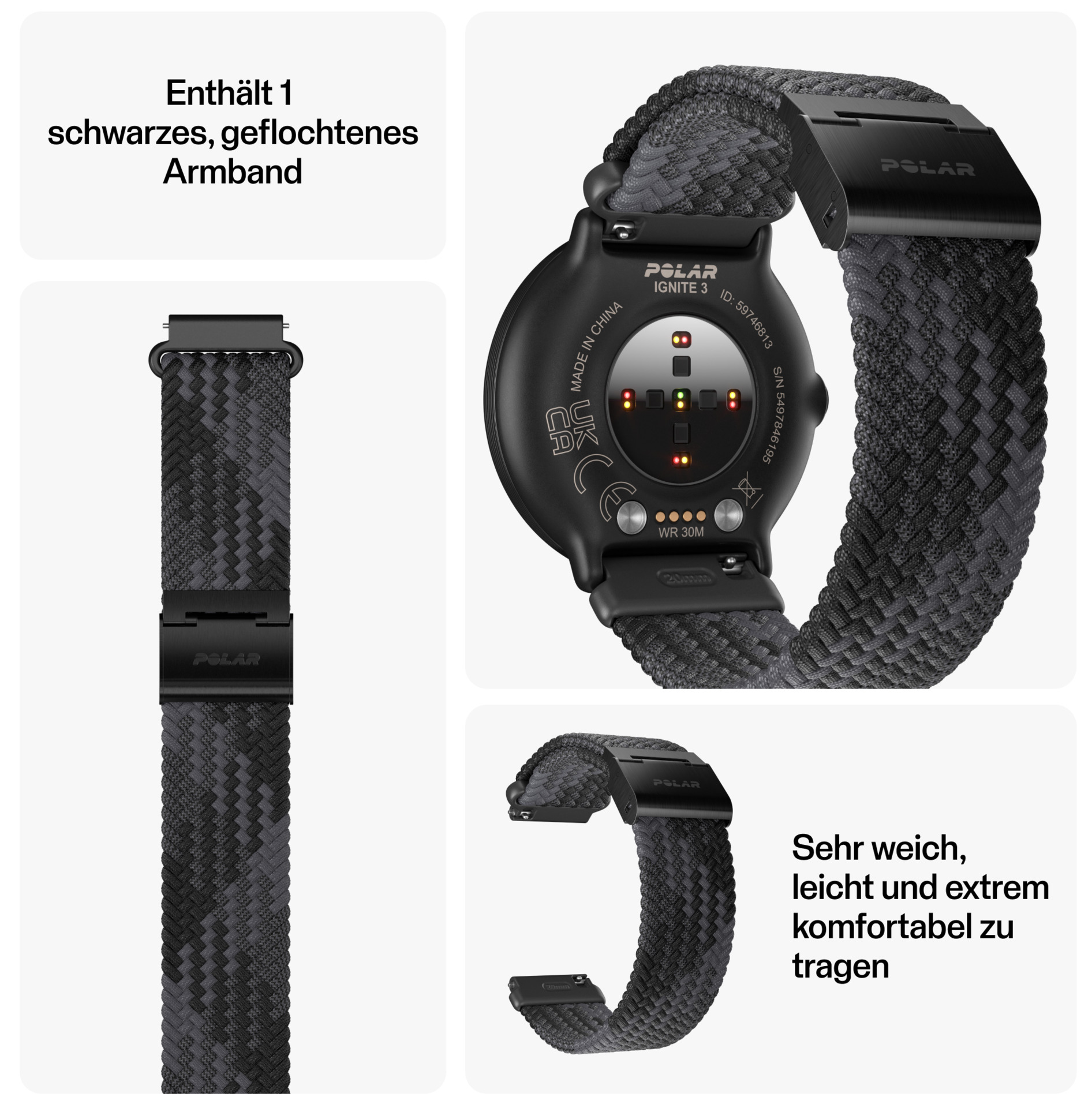 POLAR IGNITE 3 BRAIDED YARN S-L Smartwatch Schwarz 43mm 1.28"AMOLED Bluetooth | Wie Neu, Premiumware